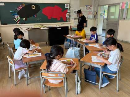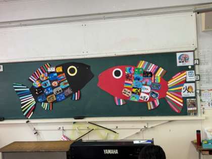 大きな鯉の鱗に、一枚一枚丁寧に模様をつけました。