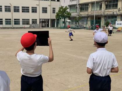 短距離走に取り組んでいます。速く走るために、まず自分の走り方を動画にとり、課題を考えました。走り出しの姿勢、腕の振り方等それぞれが自分の課題解決のために練習をして、7秒間走でその成果を試しました。