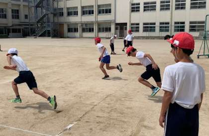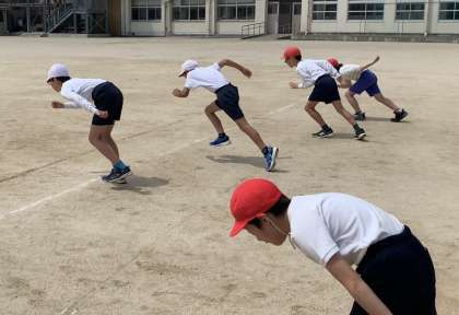 短距離走の第1時間目から比べると明らかに走り方が変わった子もいて、子どもたちのやる気とがんばりがあらわれています。