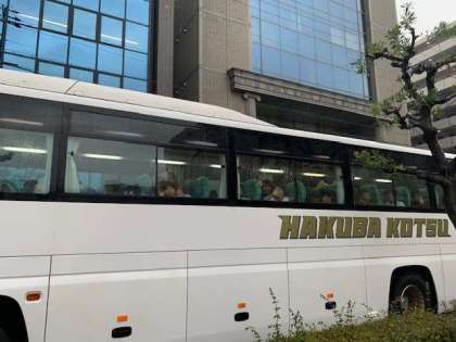雨ですが子どもたちは笑顔いっぱいで出発しました。