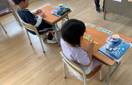 9の構成について考えました。ブロックやカードといった具体物の操作を通して理解を深めました。