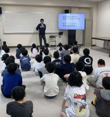 「みんなのいのちはひとつだけの宝物で、しんどいとき辛いときは『たすけて』と言っていいんだよ。いのちを大切にするというのは自分の『こころ』を大切にすること。自分のいのちも、まわりの人のいのちも大切にできる人になってほしい。」と仰られ、子どもたちも真剣に話を聞いていました。