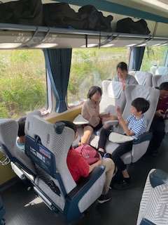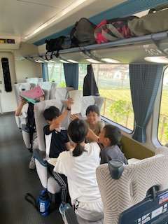 電車の中では、おしゃべりをしたり、カードゲームをして楽しんでいます。