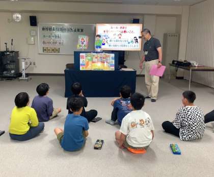 ペープサートとパワーポイントからルールを守る大切さについて学び、万引き等の非行について理解を深めました。