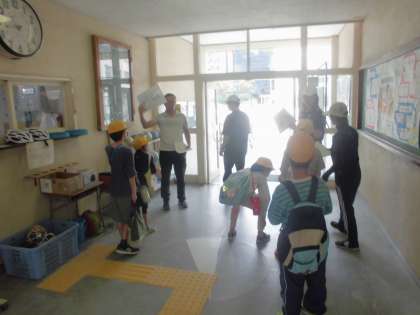下校は、保護者への「引き渡し訓練」を行いました。