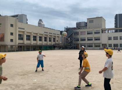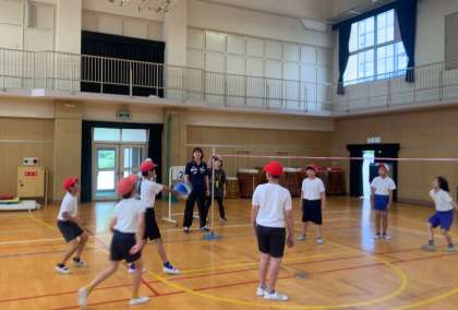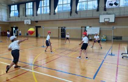 ソフトバレーボールに取り組んでいます。サーブ、レシーブが上手になり、工夫したルールに従ってゲームも盛り上がってきました。