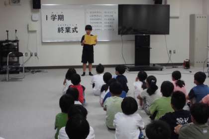 児童代表の振り返りのことばでは、「1学期できるようになったことがたくさんありました。」と委員会や自然体験学習、水泳の学習などがんばったことをしっかりと発表できていました。
