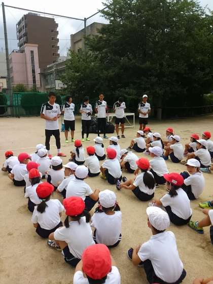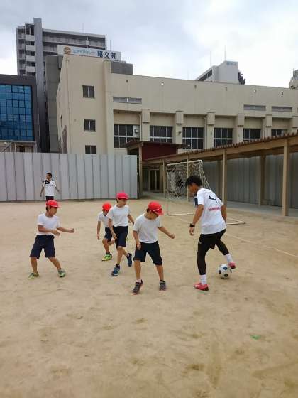 子どもたちの夢をはぐくみ、スポーツへの興味関心を高めることを目ざして、セレッソ大阪の選手を招いて楽しい時間を過ごしました。運動の苦手な子も、ボールを自由自在に動かす講師に目を輝かせながら、走りまわっていました。