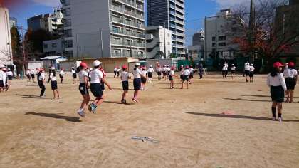 今日、1 2 3年は2時間目に、4 5 6年生は3時間目に、京都大学のなわとびサークルの方々を講師に招き、なわとびの学習をしました。今回は、2人ペアでとぶ飛び方を中心に教えていただきました。子ども達は、2人とびの練習を、講師の先生に教えてもらいながら、楽しく練習していました。