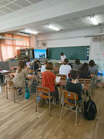 6限 林間説明会 教室で大型モニターで写真を見ながら、説明を聞き