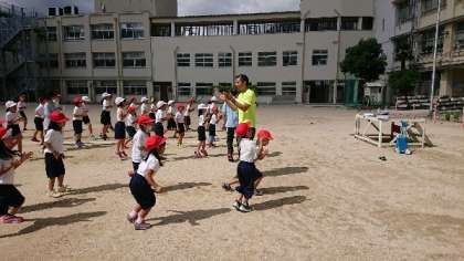 走り方の授業では、肋骨の下に膝を入れる、体重のかけ方、スタートの姿勢と
