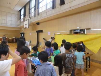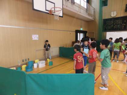 きょうだい学年(1年生と6年生、2年生と4年生、3年生と5年生)でお店の準備、遊びをしました。みんなで協力して楽しい活動になりました。お店は、「なげていれてゲーム」「水中ひらひらゲーム」「もぐらたたき」「イントロクイズ」「シルエットクイズ」「ボールいれ」でした。