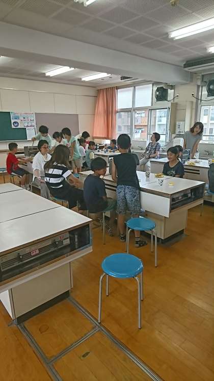 27日(木)5限に家庭科室で5年の親子集会をしました。