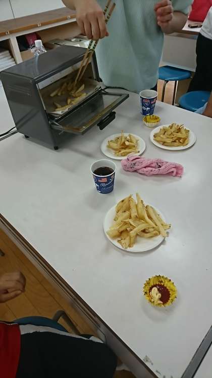 トースターでポテトフライを焼いて、みんなでワイワイ