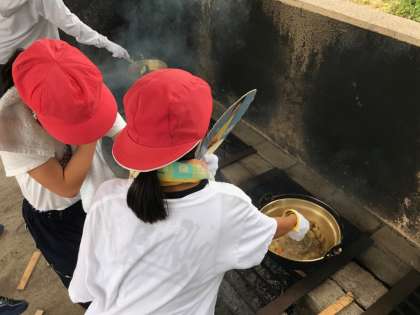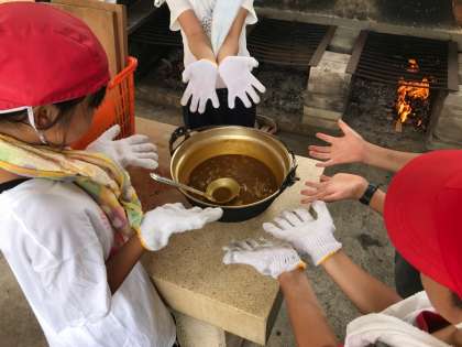 なべにルーを入れて、かきまぜて、完成!! みんなで作ったカレーは、きっと『おいしい』はずです。