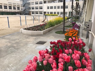 4月5日(金)の入学式、8日(月)の始業式を迎えるように、校内の草花が色とりどりに咲き誇っています。