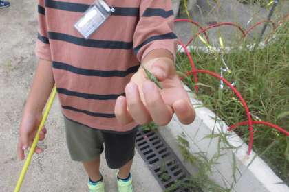 こん虫などの虫はどんなところにすんでいるのか、実際に観察に行って調べました。草や土のあるところにいるのは、えさがあったり、かくれたりできるからと気づくことができました。