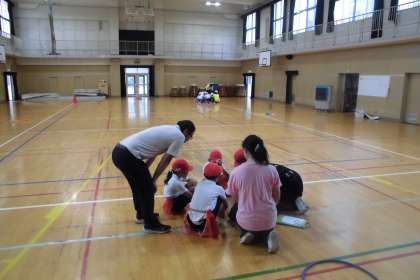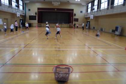 今日の体育では、タグ取りの宝運びゲームを行いました。