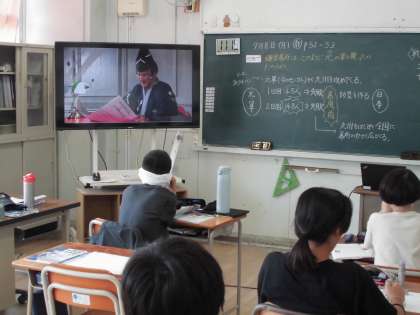 今日は鎌倉時代の元との戦い、その後の社会の変化について学びました。みんな落ち着いて学習に取り組んでいます。