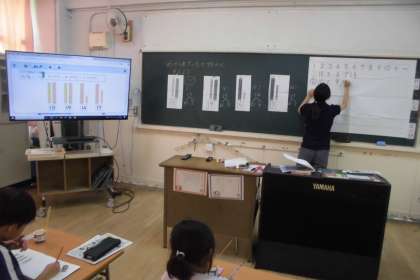 14は、10といくつでできているかな?じゃあ、17は10といくつでしょう?みんなで確認しながら、数の仕組みを学習しています。