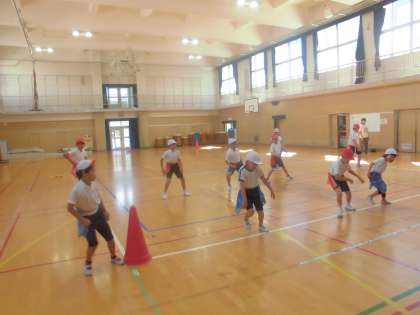 最後は、宝を手前の陣地から奥の陣地まで、ディフェンスを搔い潜りながら運びます。ゲームに夢中になっている姿が見られました。