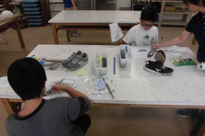 今日は自分の靴を確認しながら絵具を使って色付けをしました。