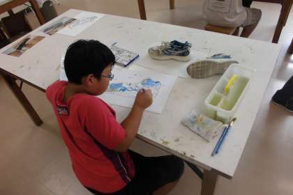 靴の模様や絵具の量、水の量を調整するのが難しく苦戦している様子でしたが、みんな集中して取り組んでいました。出来上がりが楽しみです。