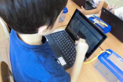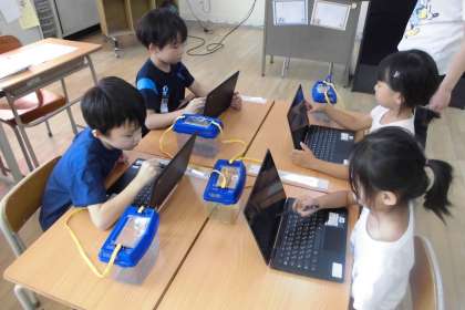 採ったバッタの観察記録を作っています。紙に絵を描くのではなく、2学期から更新された新しい1人1台パソコンを早速使っていました。パソコンで写真を撮り、タッチペンで気づいたことを記入し、観察データを保存していっていました。