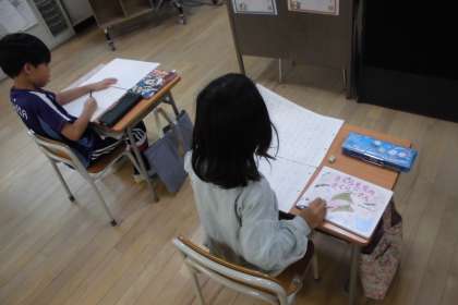 おすすめの本を紹介するため、紹介文を書いていました。メモを使って、原稿用紙に文章を書いていました。もうこれだけの量を書けるようになったんだと、その成長に感心しました。