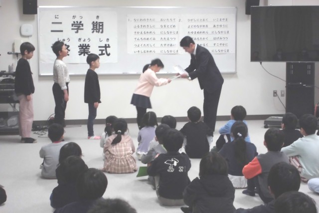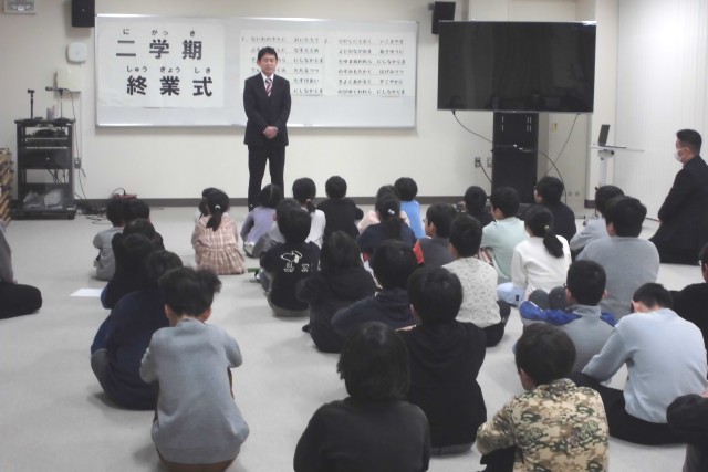2学期終業式を行いました。読書感想文の表彰の後、校長先生から2学期のがんばりを言っていただきました。また冬休みには、家族の一員であるという責任感をもって、お家のお仕事をしてほしいとのお話がありました。