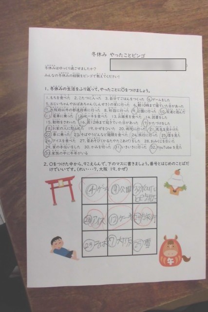 冬休みの思い出や、3学期に頑張りたいことなどを担任の先生と話していました。係を決め、ポスターを書く学年や、視覚障がいについての学習をする学年もありました。