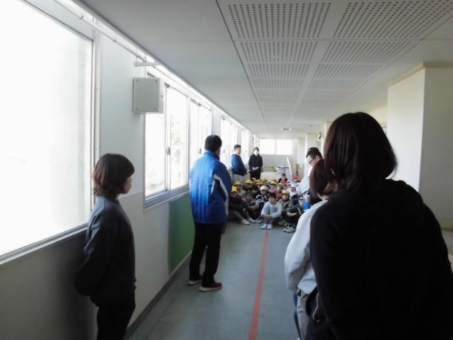 西中島幼稚園と合同で避難訓練(地震・津波)を行いました。