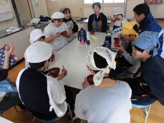 今回は、大根ではなく学校で育てて収穫したばかりのカブを混ぜました。大根とはまた違う良さも知ることができ、どちらのグループも美味しくいただきました。