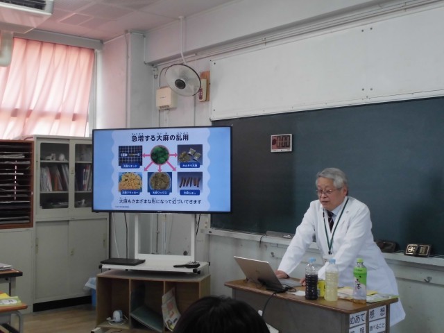 学校医薬剤師の先生に来ていただき、薬物とタバコについて学習しました。