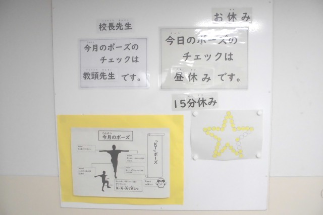 歩く時の姿勢や授業を受けている様子を今年度の4月から比べると1人ひとりが意識して姿勢が良くなっています。今後も良い姿勢で日常生活を送れるように意識できると良いですね。
