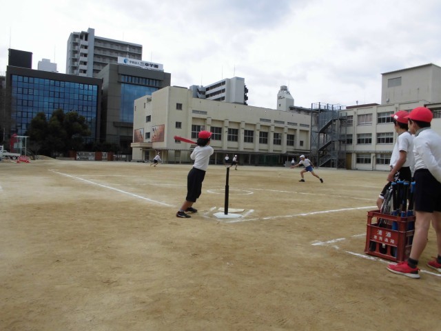 5・6年生最後の体育は、ティーボールをしました。