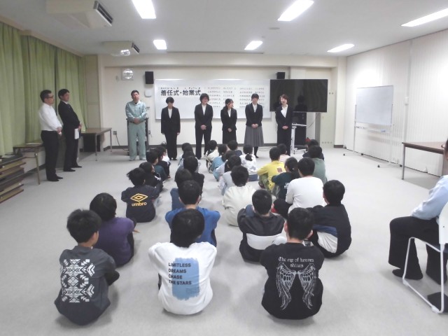 着任式を行いました。新しく来られた教職員の皆さんにご挨拶していただきました。