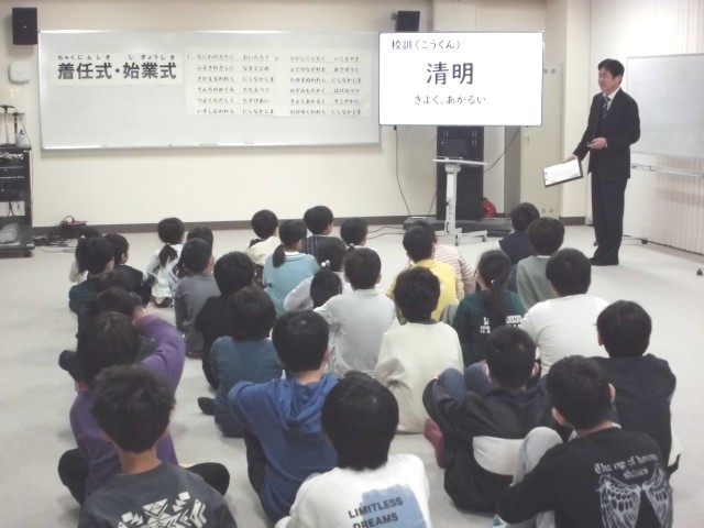 その後1学期の始業式を行いました。校長先生からは校訓「清明」について、また、みんなが幸せな学校「Well-being(ウェルビーイング)な学校にしていこう」という目標についてのお話がありました。