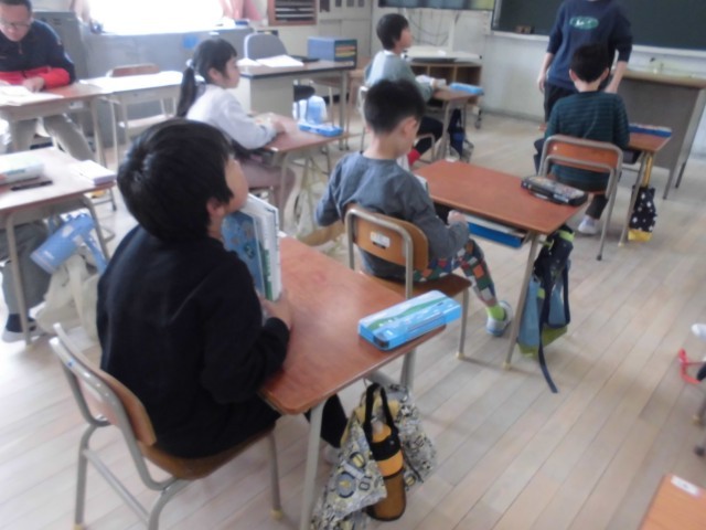 先生クイズをする学年もあります。どの学年も、新しい担任の先生のお話をきちんと聞いていました。みんなでよい一年間にしていきましょう。