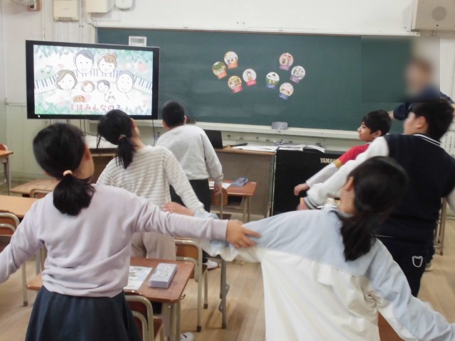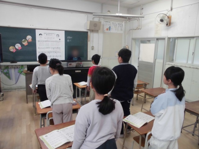 音楽の授業が始まりました。リズムに合わせて自己紹介をしました。そのあと、ドレミの歌を歌ったり、3年生の歌を学習します。笑顔にこにこの45分間を過ごすことができました。