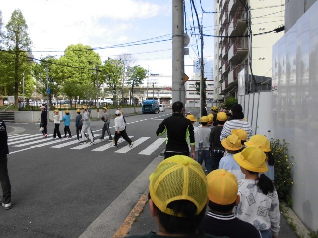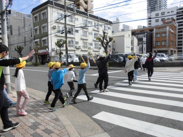 登下校や普段の生活の安全を見守ってくださっている、セーフティ淀川さんの紹介を行いました。いつもありがとうございます。その後、校外学習の遠足や社会見学に向けて、交通安全指導を行いました。横断歩道の正しい歩行の仕方、集団で並んで歩くときのきまりを確認しました。みんなで、安全に生活できるように頑張りましょう。