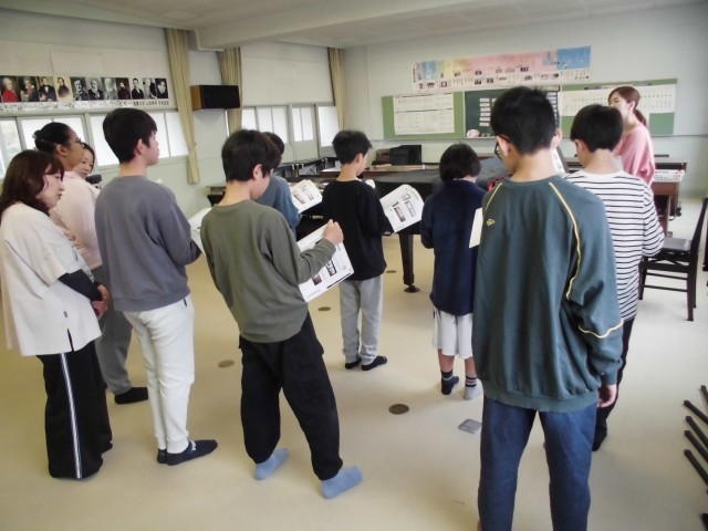 春が来た、もみじなどの作曲家を学習をした後、合唱と合奏をしました。