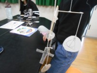 2月13日 教育委員会の事業である理科特別授業を6年生がうけました。てこのはたらきについて学習してきましたが、モビールをつくることで、おもりと支点からの距離によるつりあいを体感することができました。