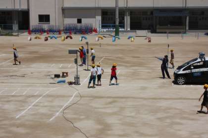 安全な歩行の仕方や道路に潜む危険について、模擬道路で歩行練習をしながら学習しました。
