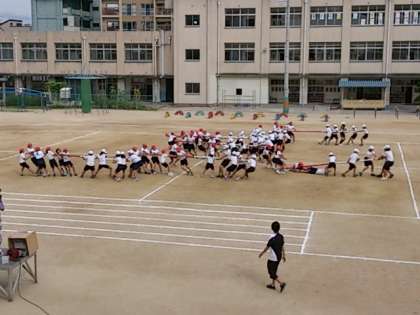 5年生の団体競技 棒引きの練習風景です。