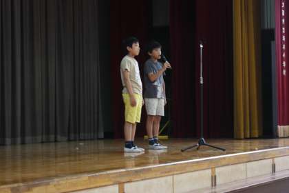 終業式では、校長先生の講話、代表の児童による夏休みの抱負の発表がありました。