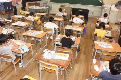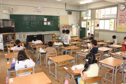 1年生は、はじめての給食を食べました。分散登校対応のため縮小献立でしたが、おいしかったの声も聞かれました。