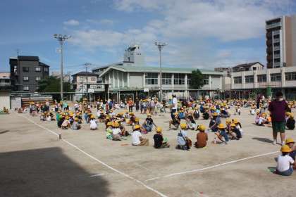 本年度初めてのたてわり班の顔合わせがありました。感染症対策と熱中症対策を十分にとりながらの顔合わせとなりました。高学年の児童が低学年の児童たちにやさしく声かけをしながら活動する姿見られました。