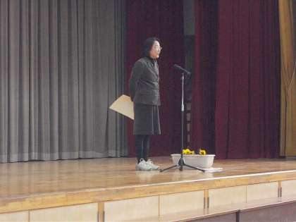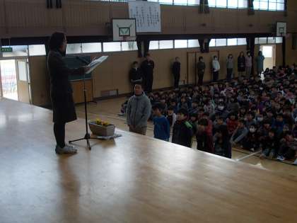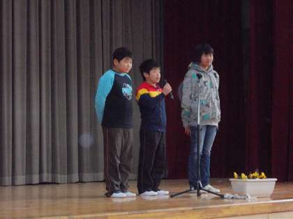 校長先生のお話の後、児童代表の3人が3学期の目標を発表しました。