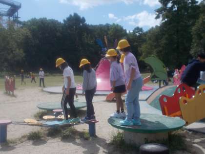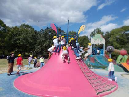公園に着いてからはお弁当を食べ、わくわく池冒険広場で遊んだり、広場を駆け回ったり、「だるまさんがころんだ」などをして上手に遊んでいました。その後、「ソラード」や展望台に行って、帰りました。